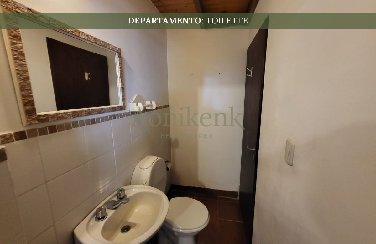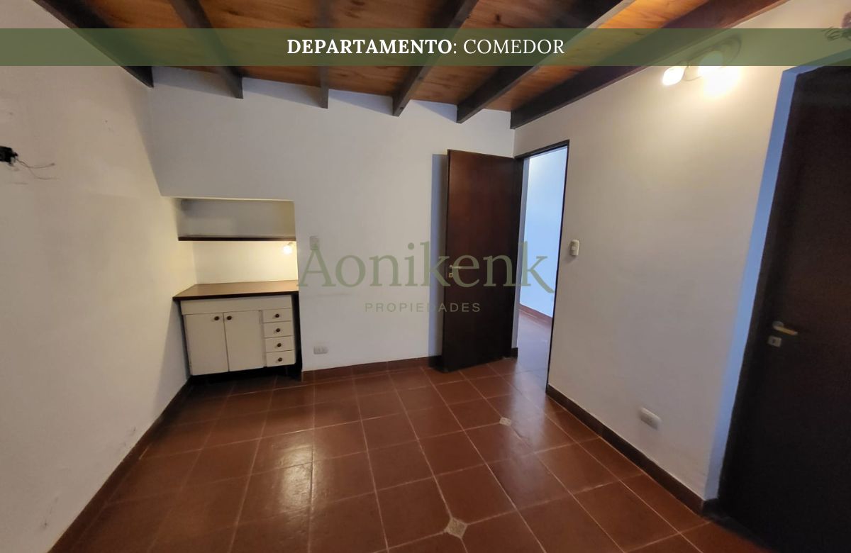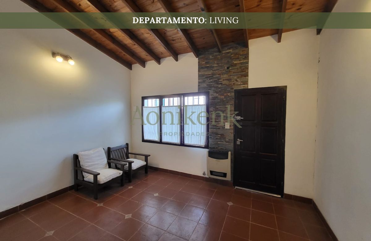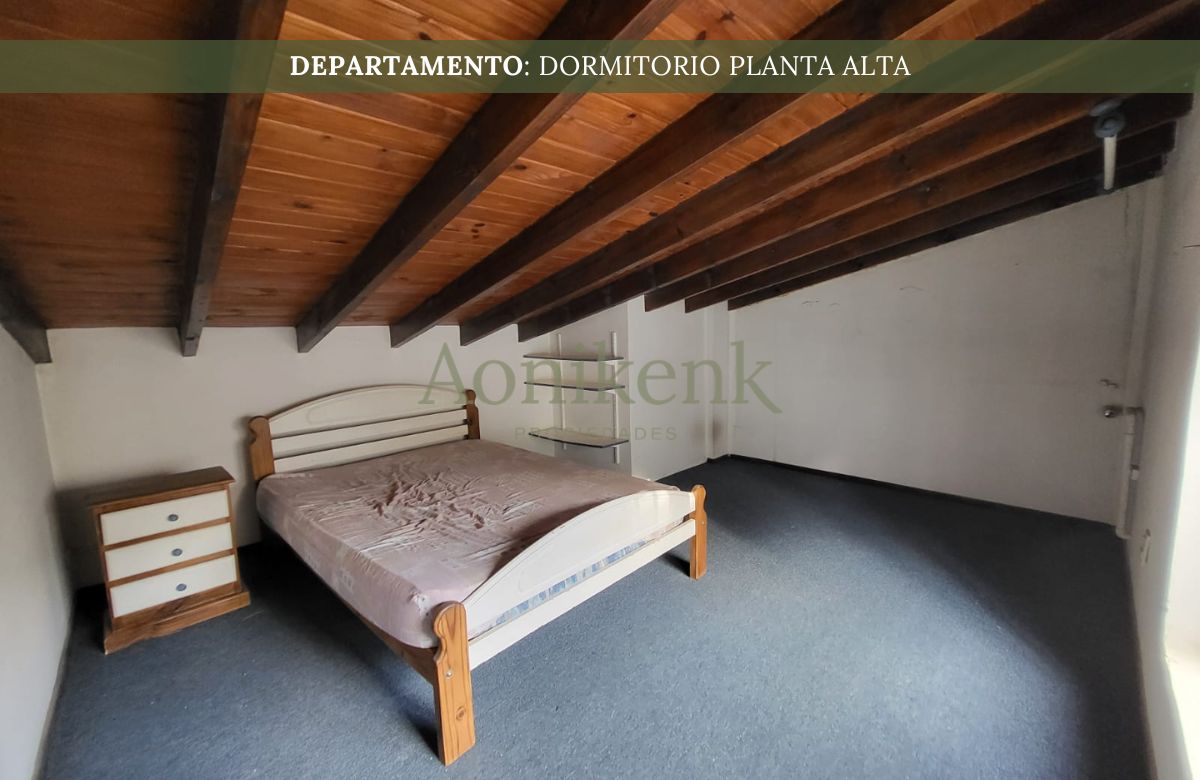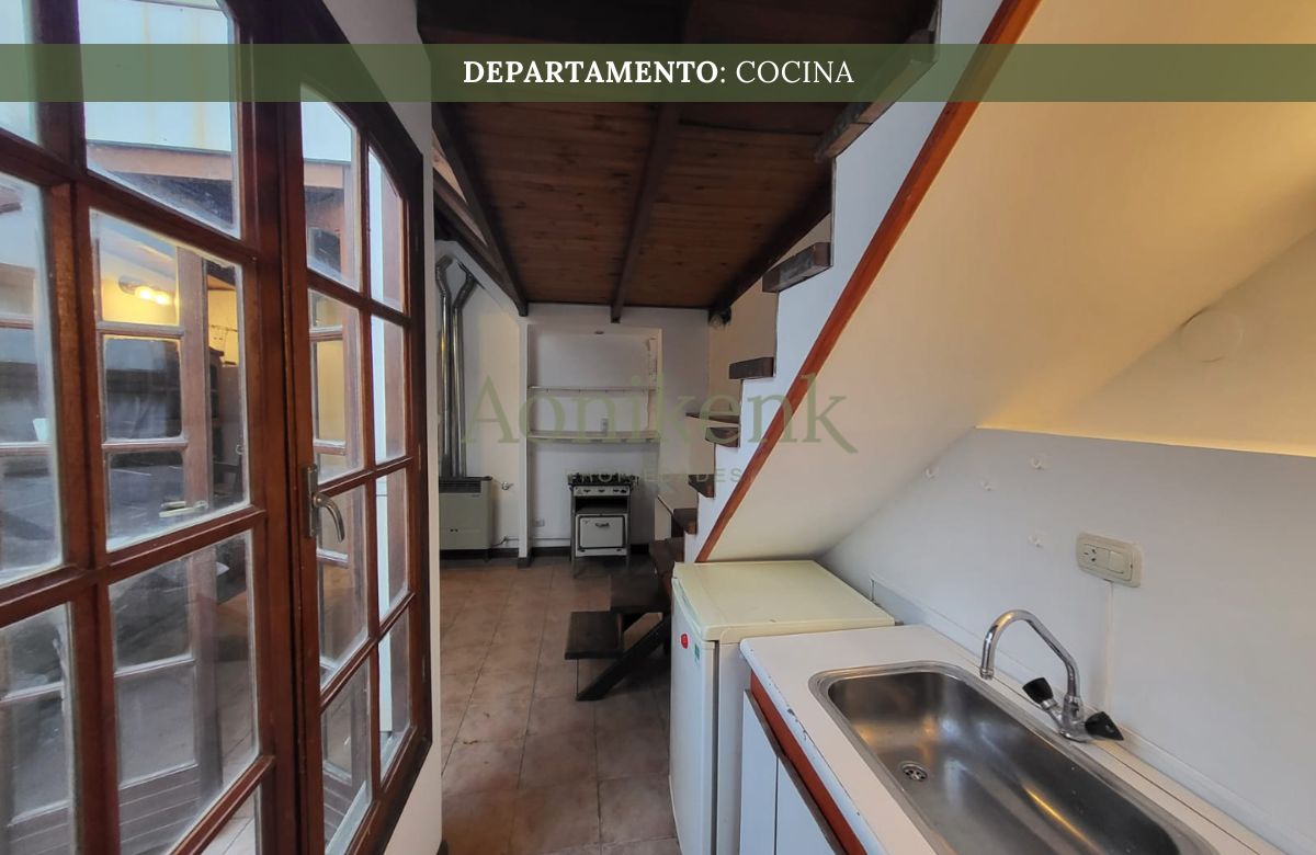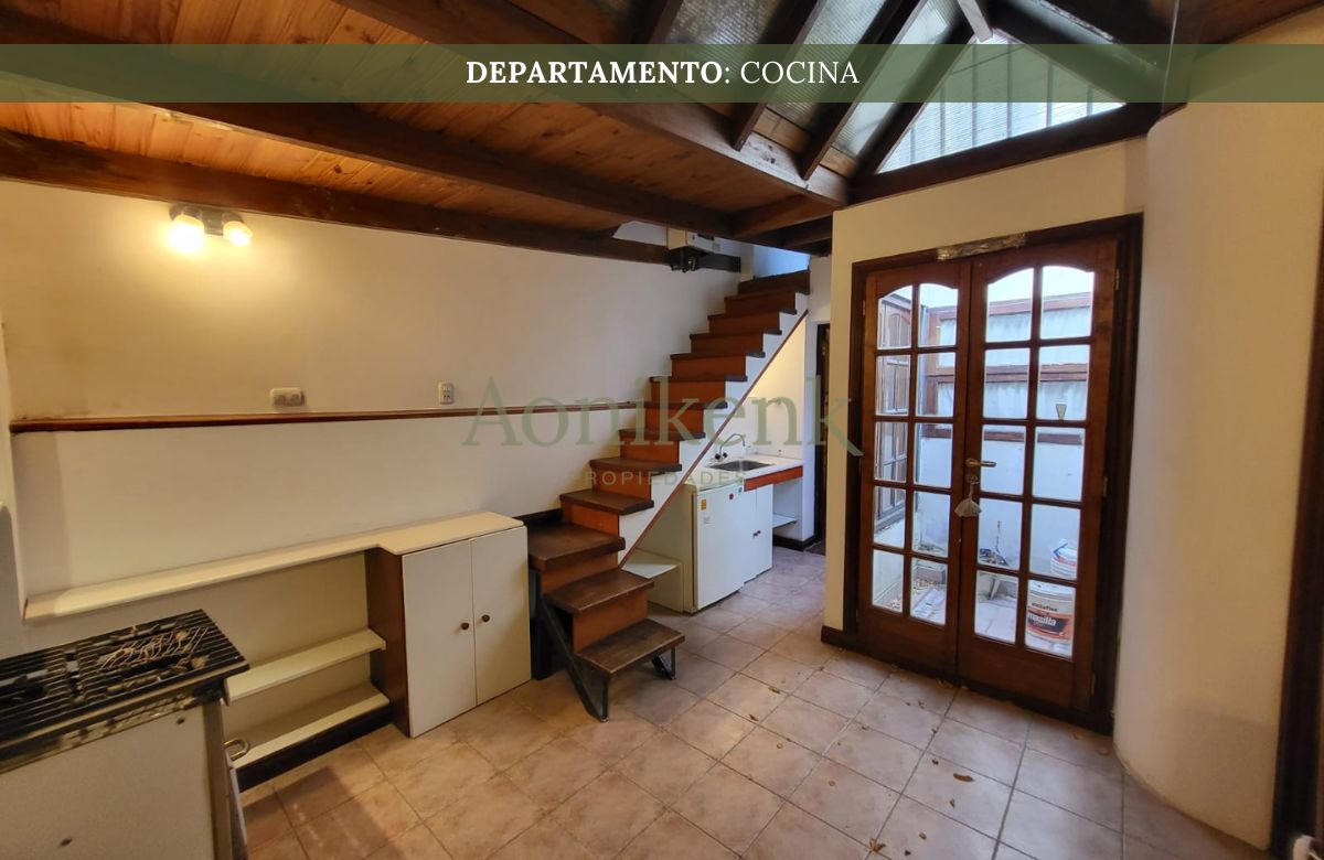 El departamento se encuentra distribuida en living, cocina-comedor y dos baños. Y, en planta alta, un dormitorio.