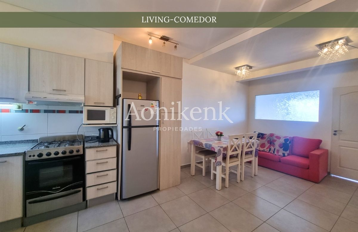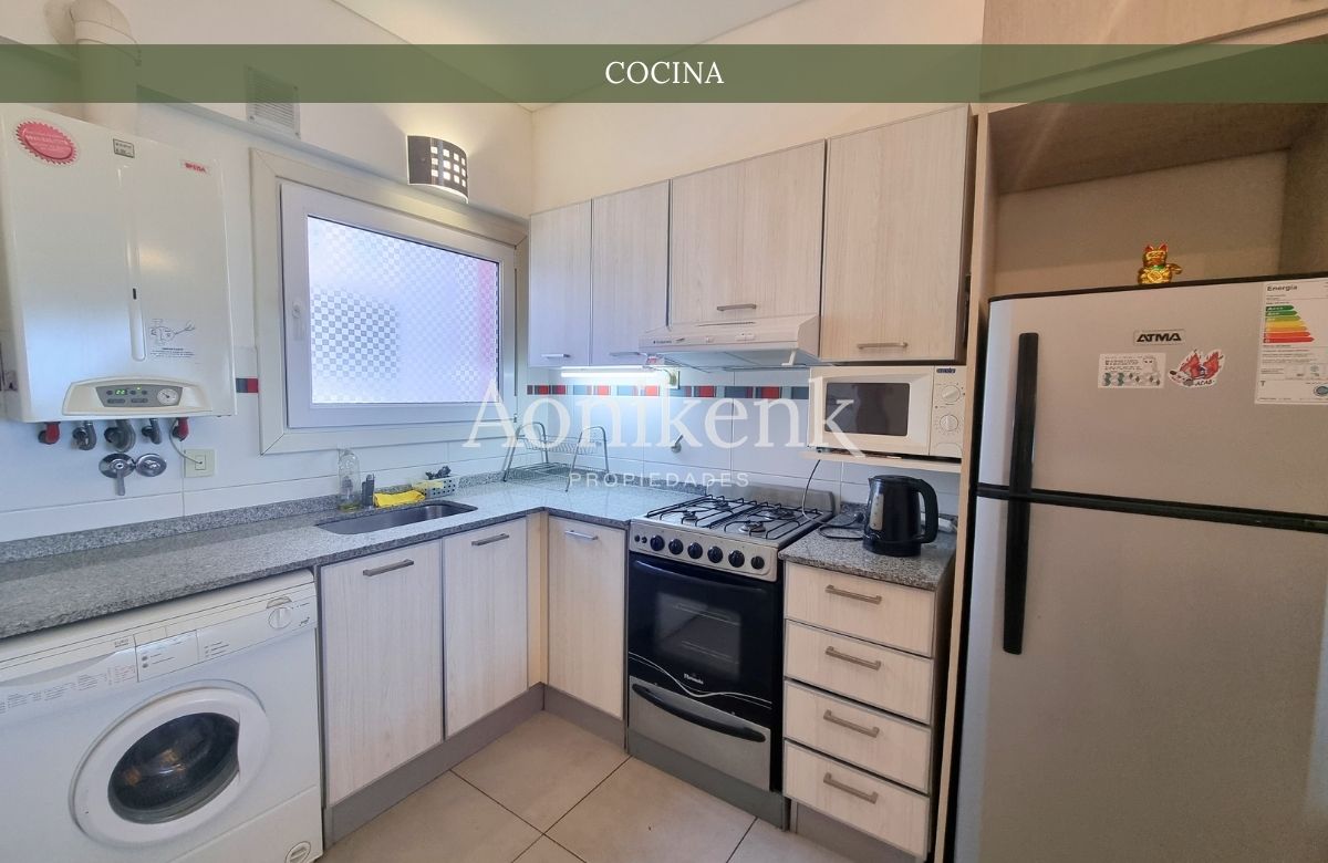 Departamento semi amueblado en planta baja. Cuenta con cocina-comedor integrada, un baño completo y un dormitorio con placard empotrado. Además, dispone de una terraza individual ideal para disfrutar de una hermosa vista. Incluye un espacio para estacionamiento.